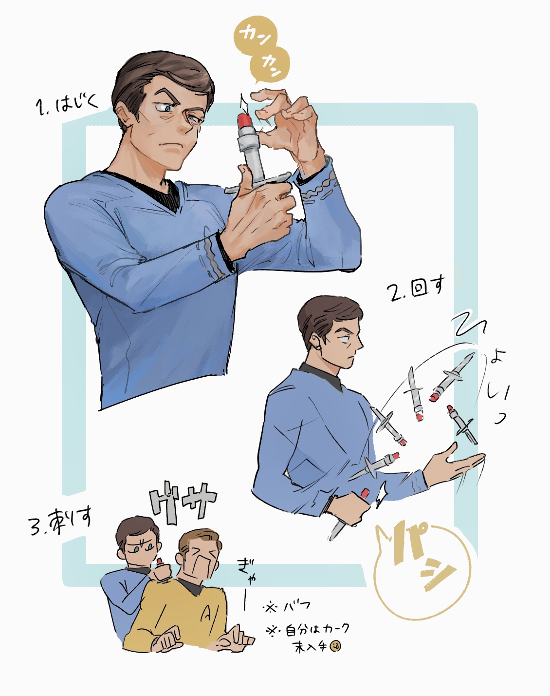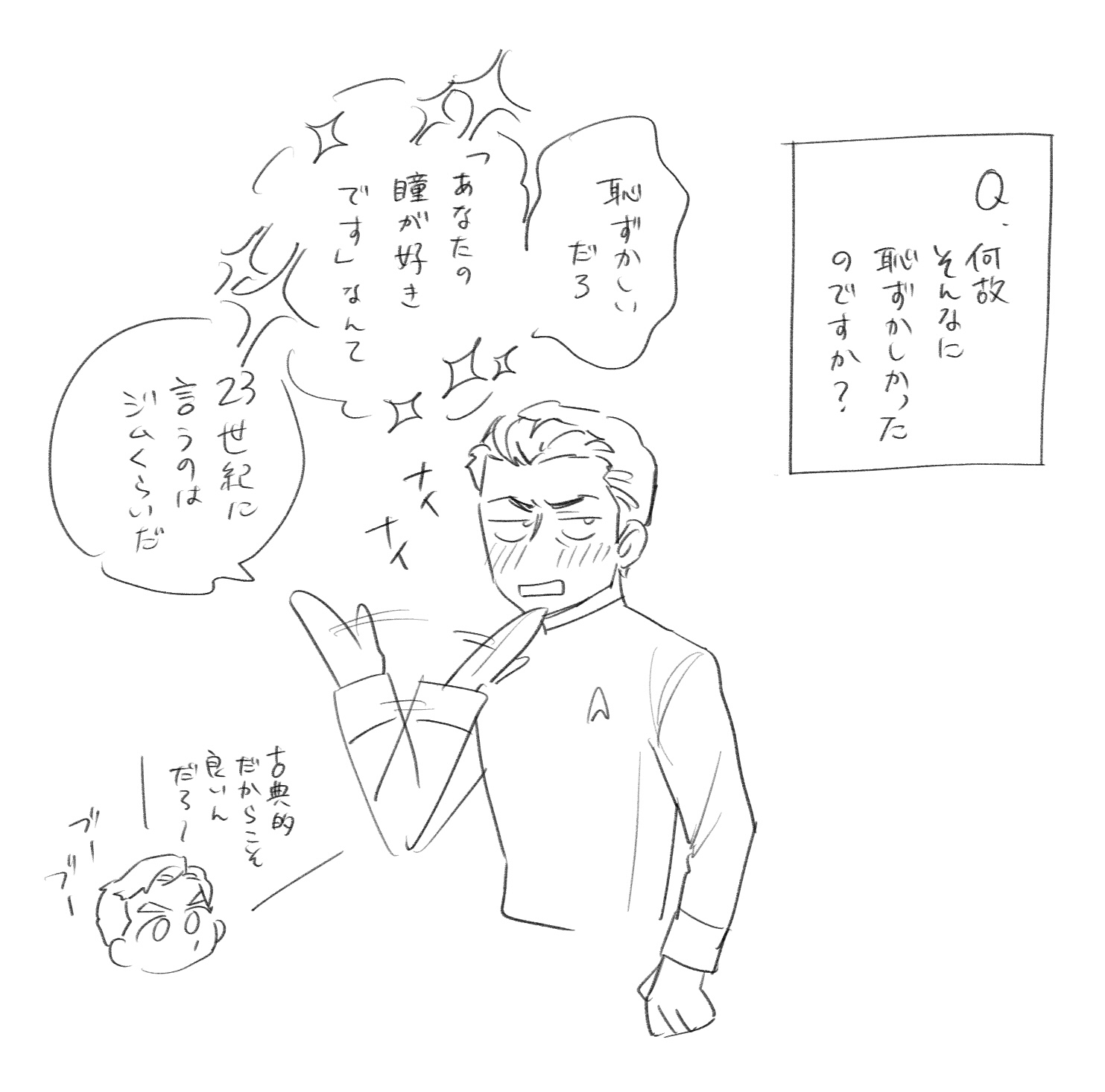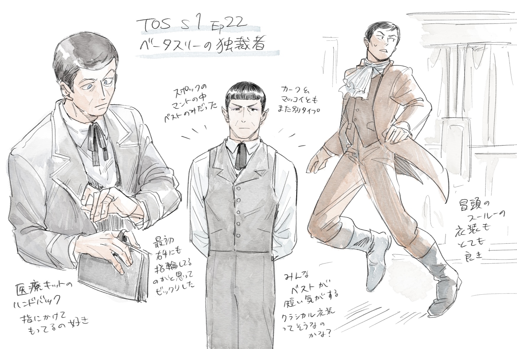 ↑描いたは良いけど、手先の器用なドクターが敢えてスポックにタイ締めて貰う状況ってどんなだ?