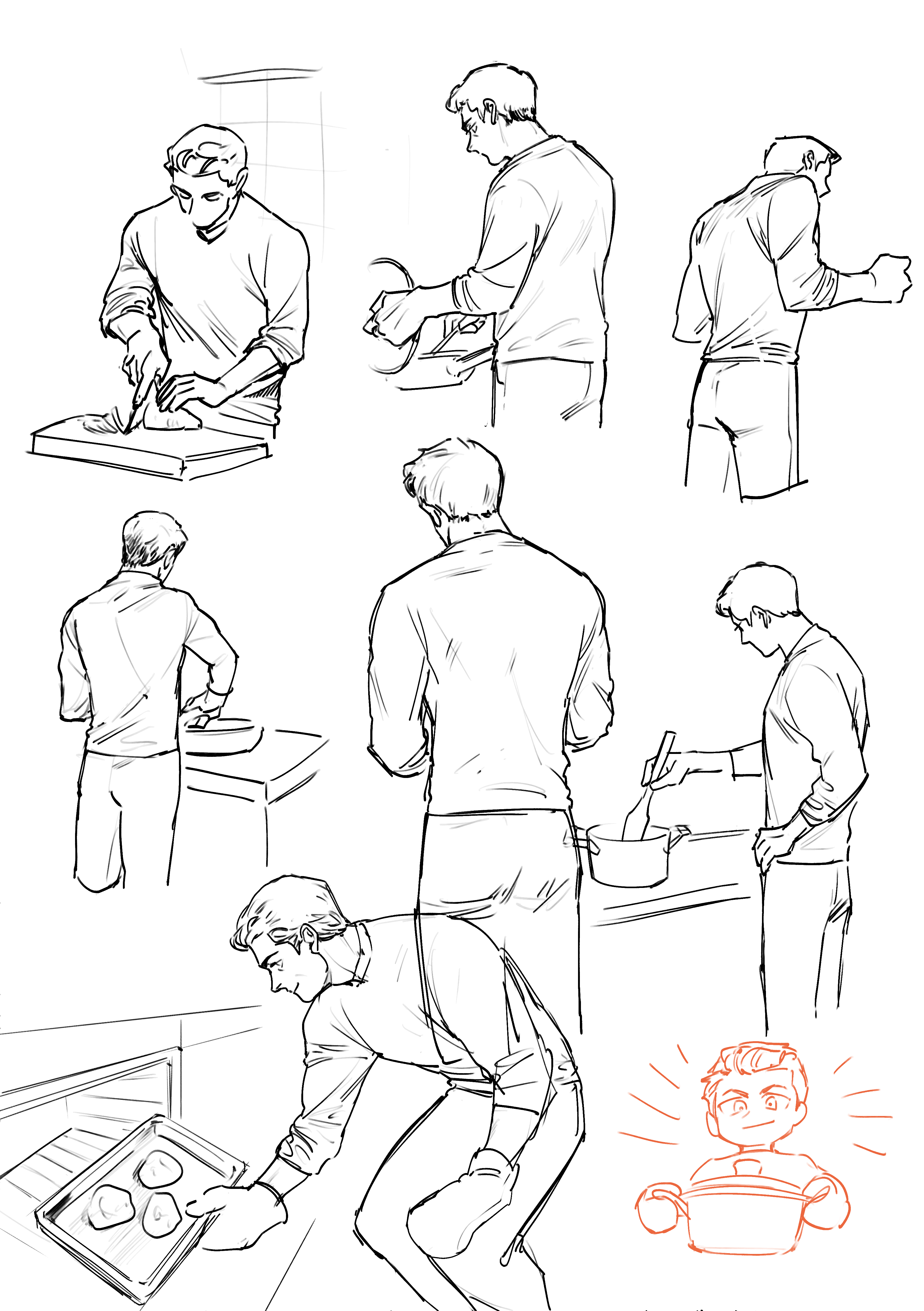 料理する人&後ろ姿の練習(参考写真あり)